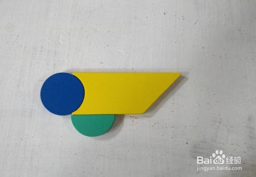 在梯形的下面,放上半圆形挨着,左端一齐,如图。
