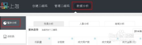 二维码推广出去后进入还可以实时查看推广效果,进入码上淘点击【数据分析】就可以查看到您的通过二维码的扫码量、商品商品访问量、成交数等数据。