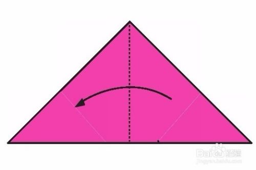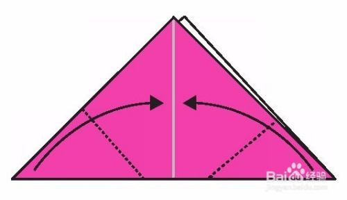 将刚折好的右角沿虚线向箭头方向折。