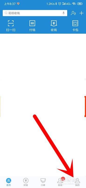在支付宝首页,我们点击下方的我的,进入我的界面。