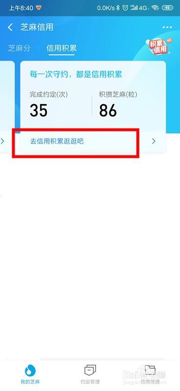 5、点击去信用积累逛逛吧;