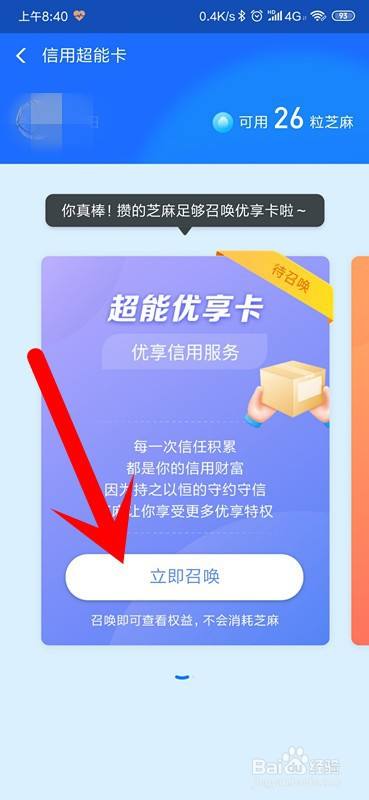 tips:召唤信用超能卡需要一定的芝麻粒,但不消耗芝麻粒。