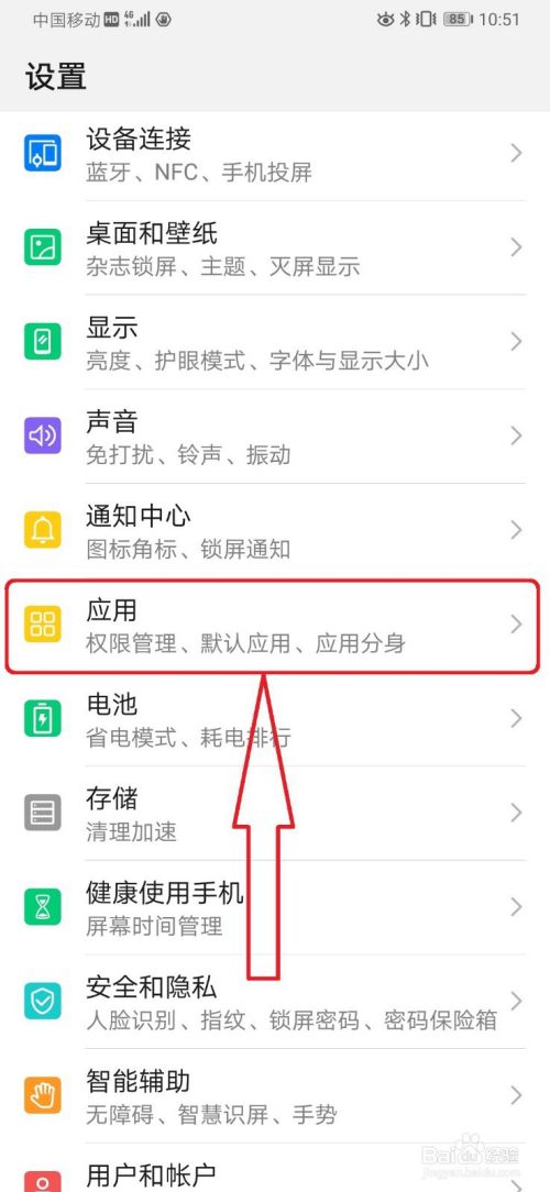 进入手机【设置】页面,选择打开【应用】菜单选项,如下图所示。