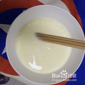 一个容器,倒入牛奶,根据自己的口味来放入适量的白糖,如图