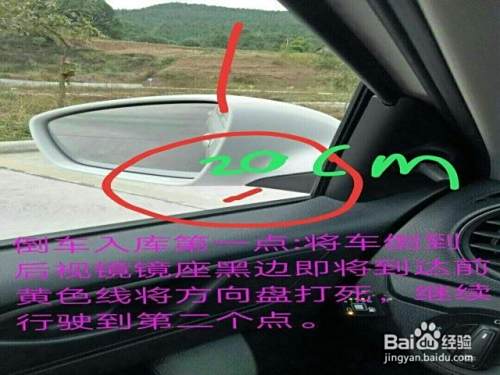当库前边线出在左后视镜位置时,停车,倒库完成.。