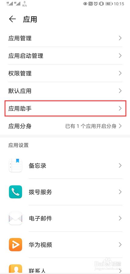 选择【应用助手】选项点击右侧的小箭头进入到详情页面