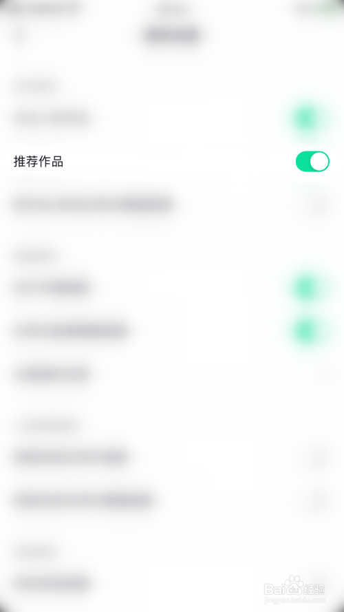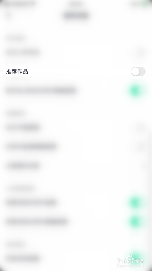 通知设置界面点击“推荐作品”后面的圆点