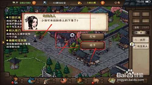 今天教喜欢烟雨江湖的朋友,如何完成带信息给勾玉夫人的任务
