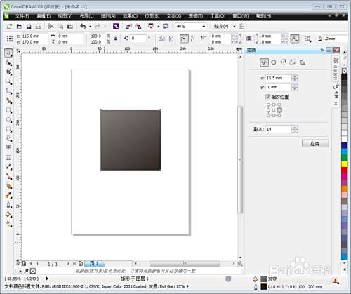 做完以上设定后,点击菜单栏上“窗口”在下拉菜单中选择“泊坞窗”中的“变化”,在里面选择“位置”口令。右侧的选项中填上“X为15.5mm”而下方的相对位置选择“右侧中心”,副本为“14点击应用。