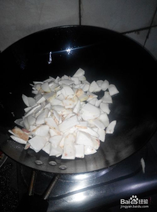 放入少许的油,热了后把芋头倒入翻炒。