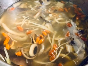 这道菌菇汤味道鲜美,简直了!简直了!简直和餐厅268一位的汤一个味道~可直接喝,也可以作为火锅的汤底~蘑菇多多的放!小火慢慢熬,味道更浓郁!除了姜和盐,不需要其他调料!