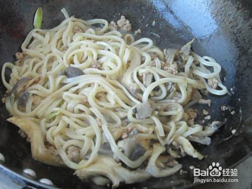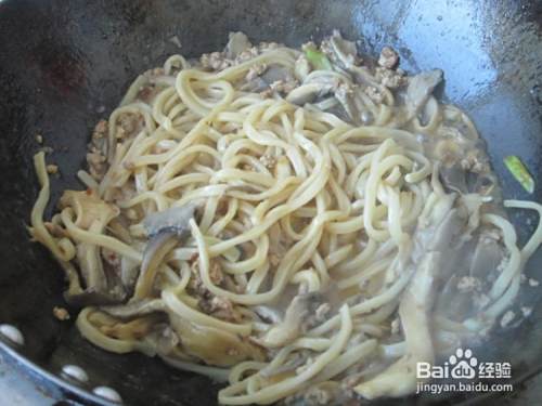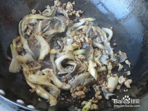 倒入蘑菇,翻炒一会儿