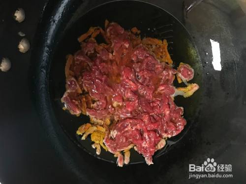 用筷子迅速将牛肉滑散,至变色后立即关火盛出。