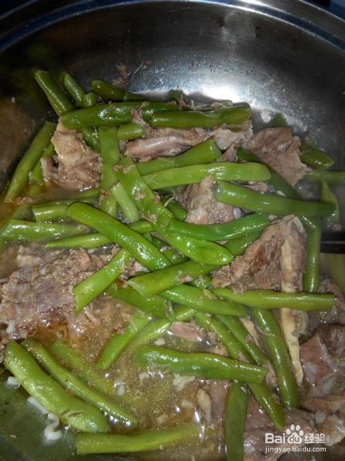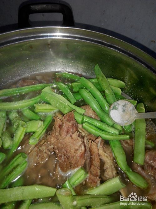 不要加任何调味品,就是羊肉的本来香味,熬出来的豆角才地道。