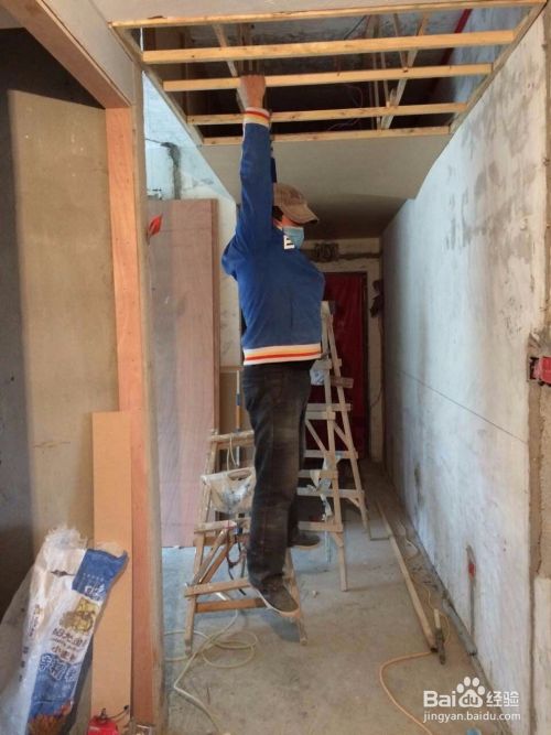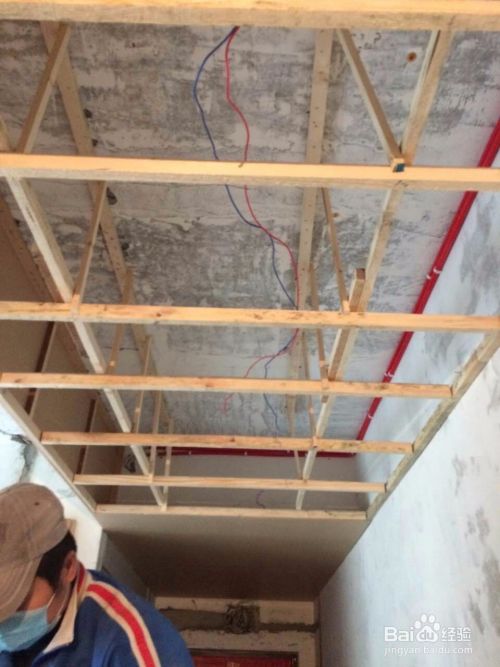 首先在下面按照设计图纸或者现场需要吊顶的位置按大小长短定好木龙骨主要的框架。