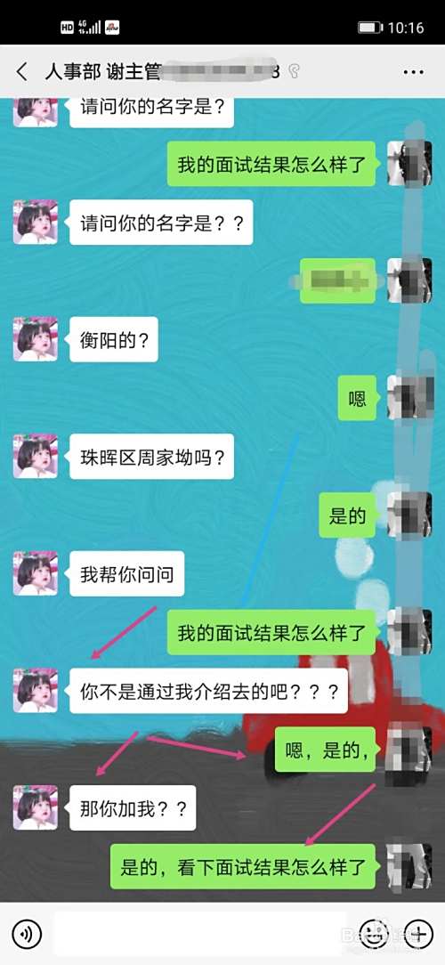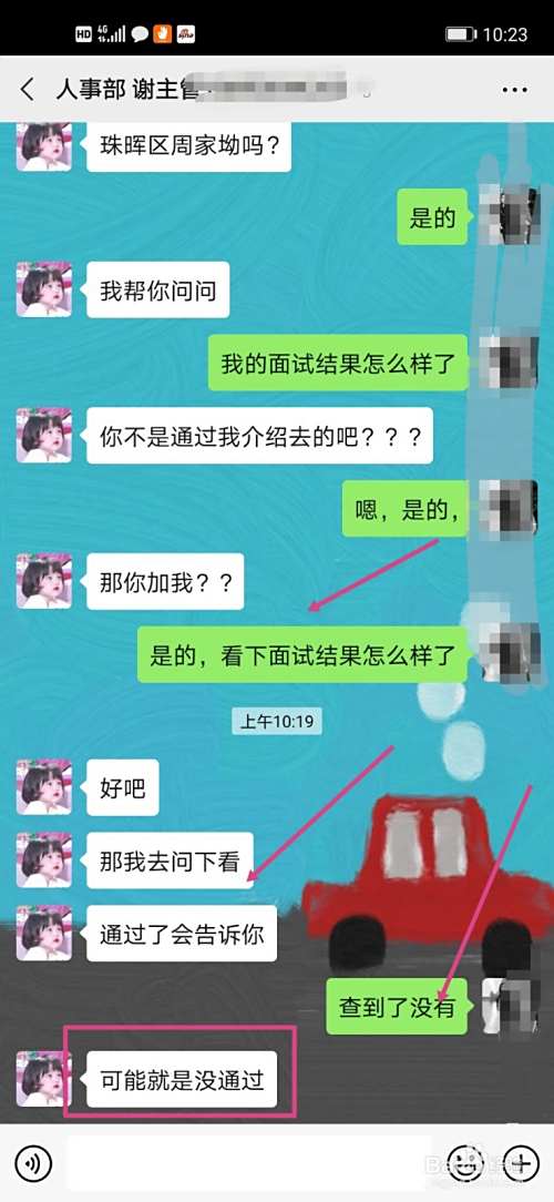 看到(HR有些不确定的时候,我继续问她我面试的情况,再一次发送我的,如下图,输入查到了没有(看到发送)