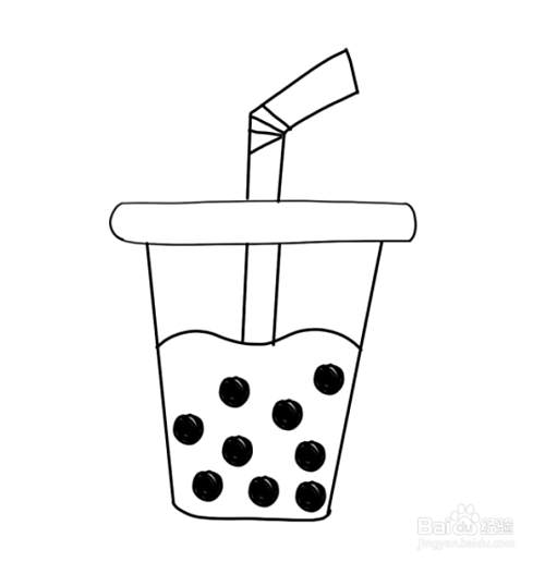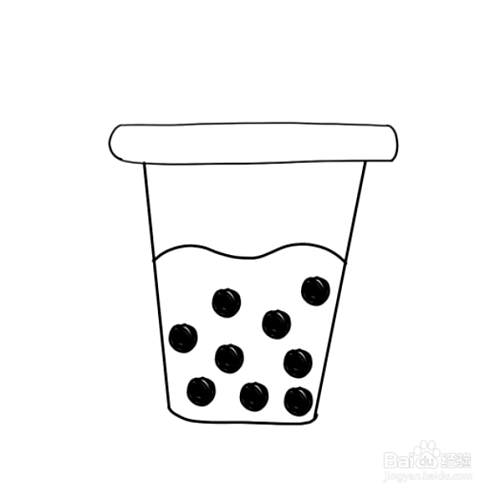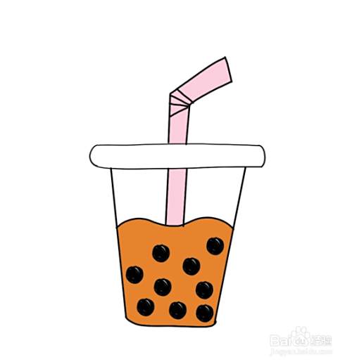 然后给杯子里画上奶茶,在多画上点珍珠。