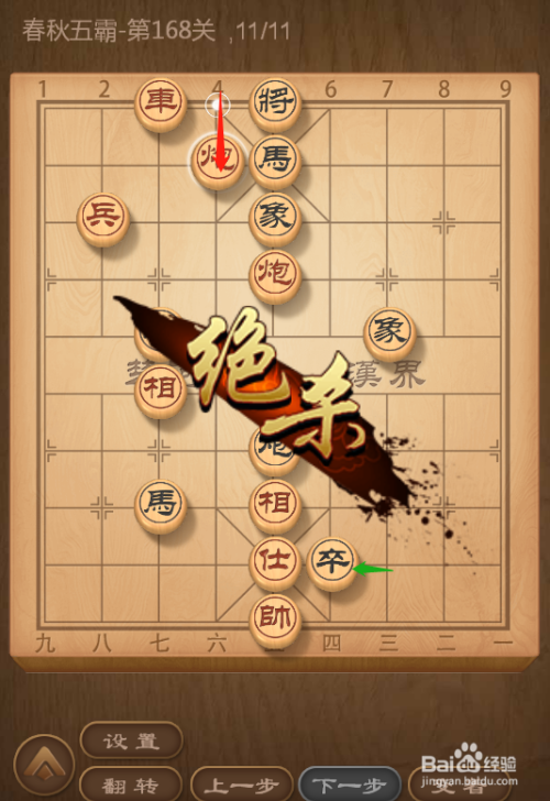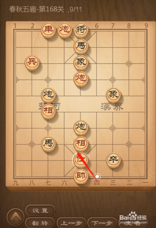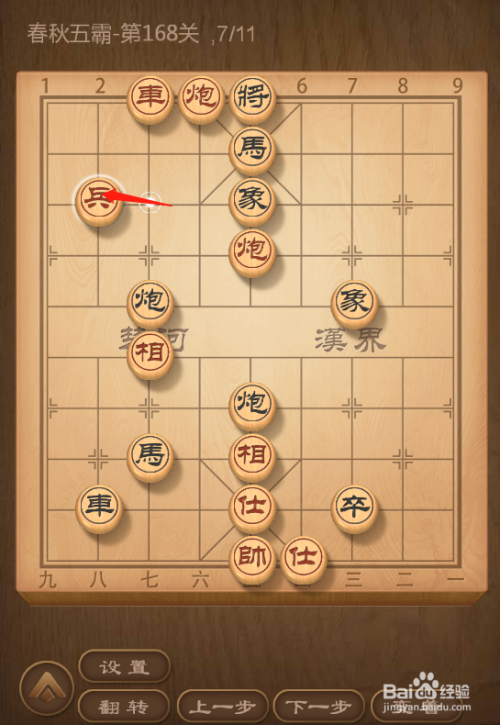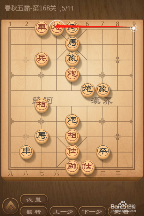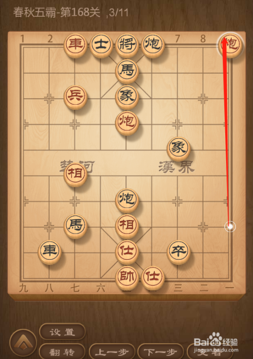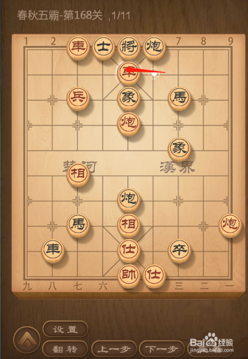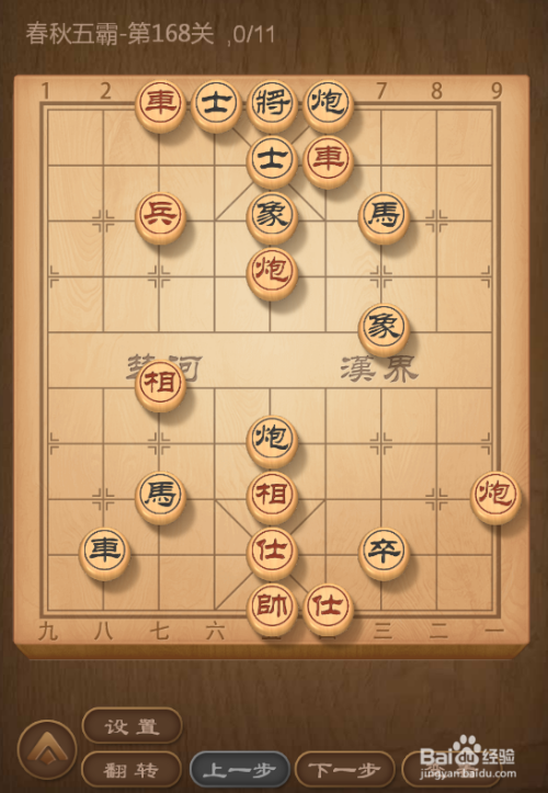 QQ象棋春秋五霸第168关通关共需11步,从这一局的情况来看,情况还是很不容乐观的,要想通关必须要先掌握战场主动权不给黑方以攻击的机会,所以这一关,红方必须要以攻为首,一鼓做气的拿下黑帅。