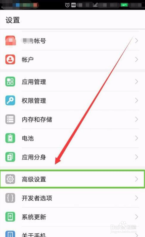 在手机设置界面,我们点击打开高级设置,进入高级设置界面,
