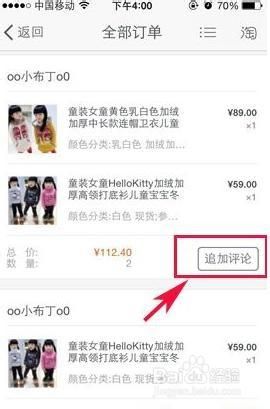 2、在【全部订单】界面,选择你想追加评价的订单,在订单后面有个【追加评论】功能。
