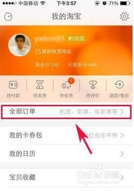 1、首先,点击【我的淘宝】,然后选择【全部订单】。