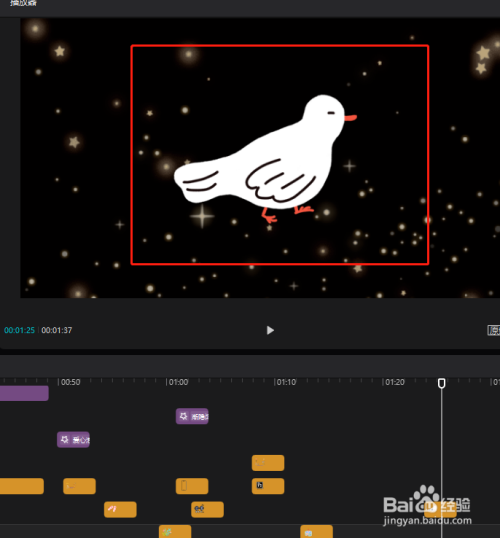 接着去预览视频窗口,可以看到这个鸽子贴纸,而且这个贴纸还可以动起来,可以用到很多地方哦