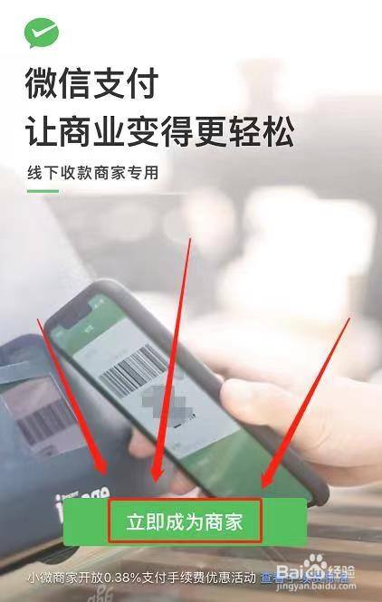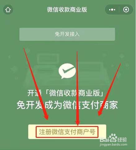 进入微信收款商业版功能后,选择“注册微信支付商户号”。