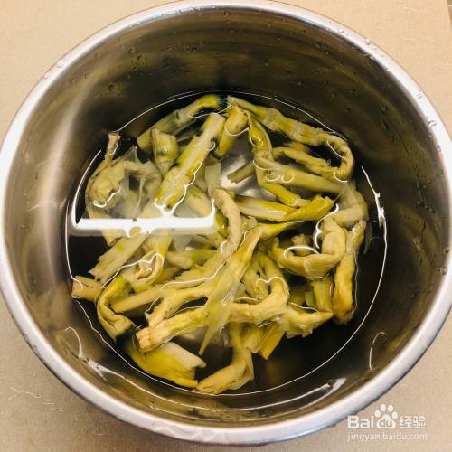 泡笋干,可以提前一晚上泡好,我这个泡了一夜变得很“胖”,咸味儿也比较淡。 我更喜欢早上起床后泡着,中午用。泡大概4小时的味道更得我心。