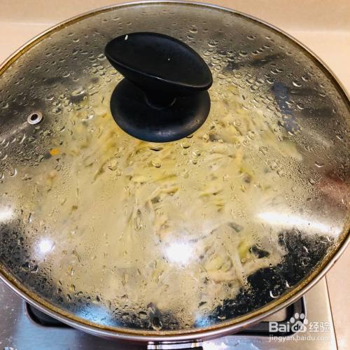 加点水,稍微煮一下,加锅盖,煮个2—3分钟,这就是切丝的好处,可以少煮些时间。