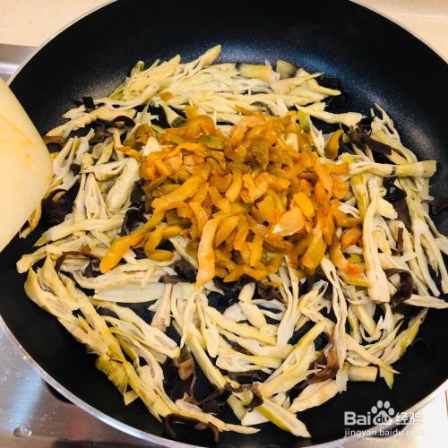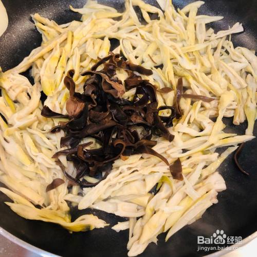 配料多加了一些黑木耳,也可以加胡萝卜或者茶干或者青红椒之类的,但是家里只有黑木耳了……