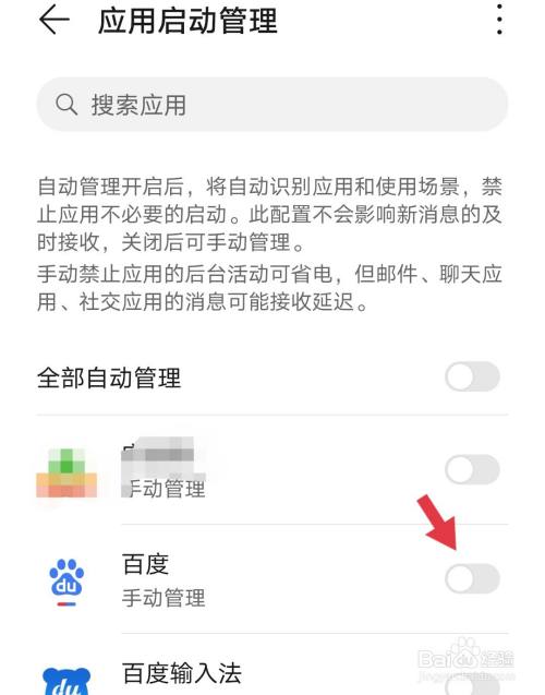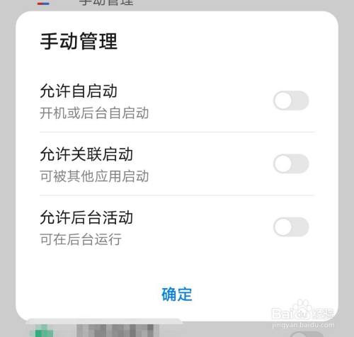 找到相应APP,点击它右边按钮直到弹出【手动管理】对话框