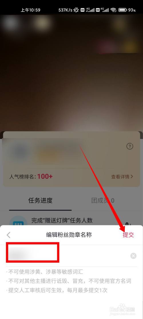 来到编辑粉丝勋章名称界面中,更改粉丝勋章名称,点击提交按钮即可。