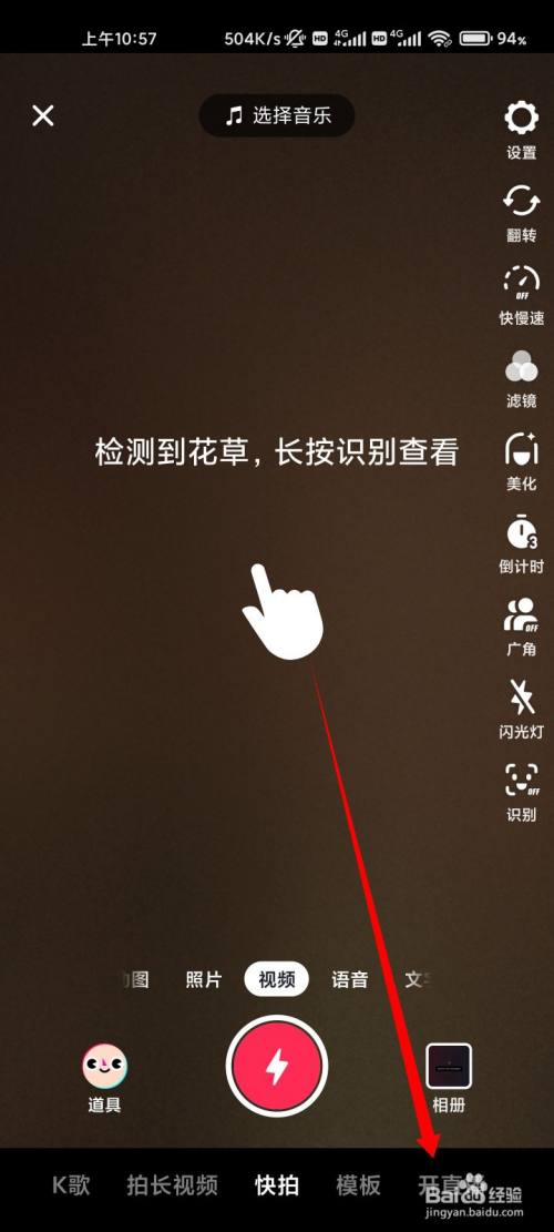 进入抖音的首页,点击底部的加号键。