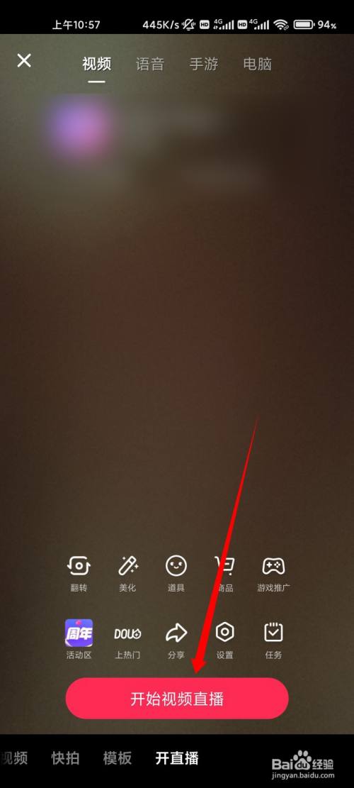 在底部,点击开始视频直播的选项。