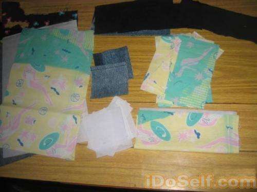 2把做卡袋的布布,一个个的排好,缝到一个长方形的隔层上