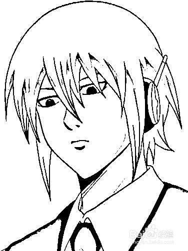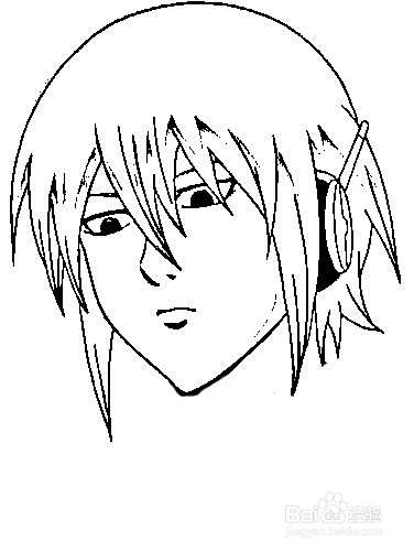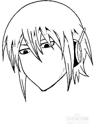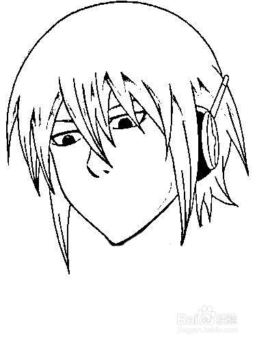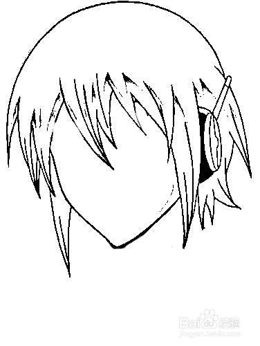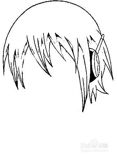 首先画出Q版人物银魂机器人的短头发轮廓和耳机部分。