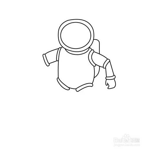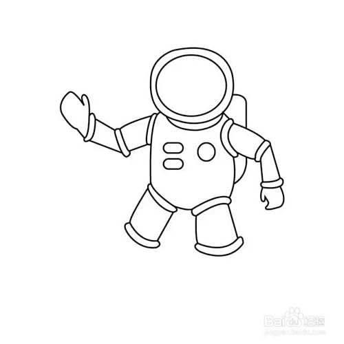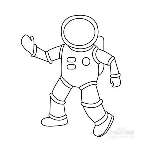 画出宇航员左脚的部分,最后,画上右脚的部分。