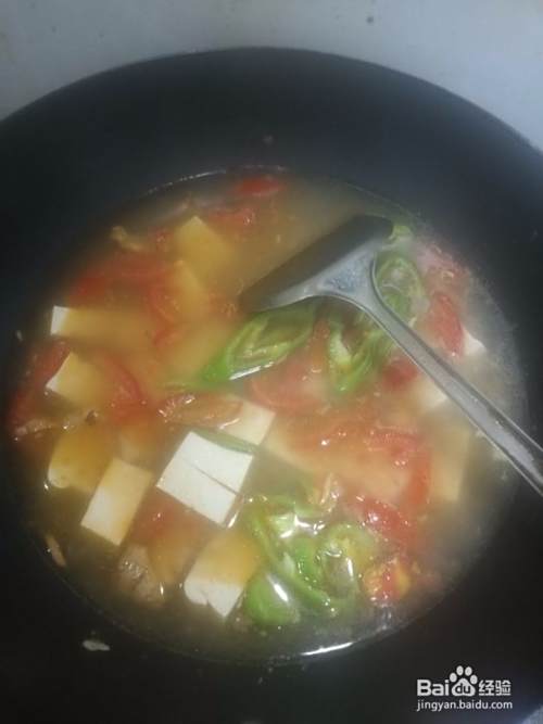 放入一点盐,把切好的豆腐块放进去到汤里面。