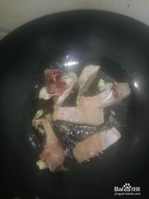接下来开始煮菜。我们先预热锅底,然后倒入适量的食用油,把腌制好的鱼肉放进去简单煎一下,再盛出来放在碗里。