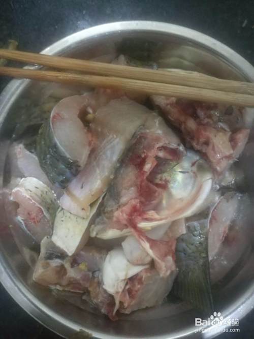首先,将买来的草鱼清洗干净(可叫卖鱼的老板帮切好),放在碗里加入一点盐跟生姜腌制半个小时左右。