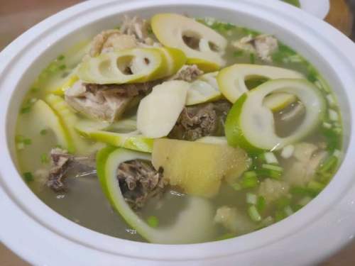 5土鸡大约炖两个小时后,将笋片加入,再炖煮十分钟左右,加适量盐和鸡精调味。