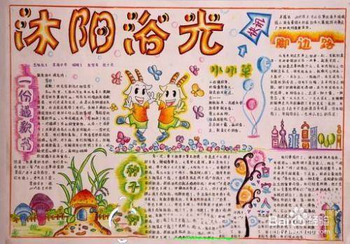 报办信息要详细。要注明办报人,办报时间,指导老师。也可以将制作时的地址注明上去。将准备好的文稿抄写到涂好颜色的底稿上就制作完成了。