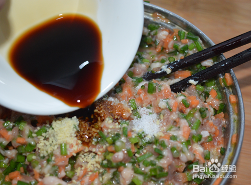 再加入生抽拌匀。(这肉馅就是一般居家包饺子、包子和馅饼的肉馅,也可根据个人口味调整。)
