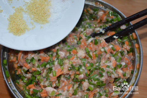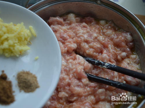加入姜末、花椒面、胡椒面。