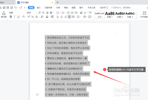 打开wps文件,在界面中输入需要编辑的文字对象