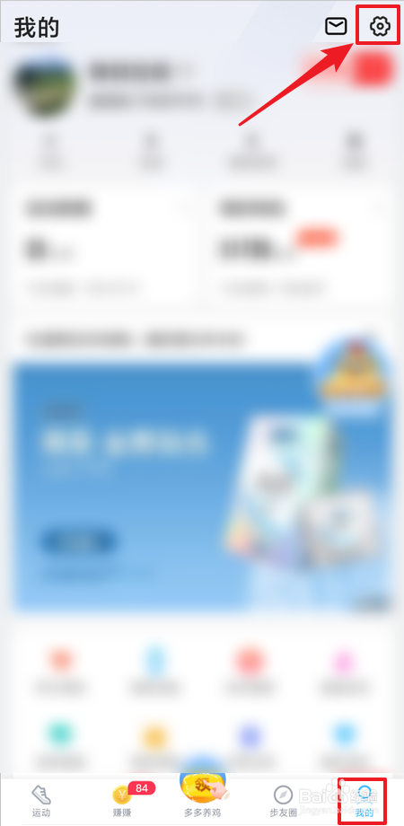 打开步多多后,打开【我的】界面并点击右上角齿轮状的图标按钮。