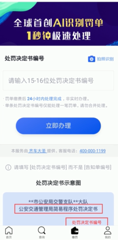 点击下方的“缴罚”,可以上传处罚决定书进行缴费。