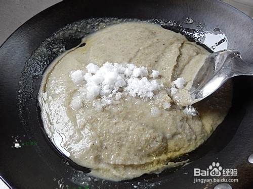 糖也可一次加入,油加入时,缘锅边加入,炒至油和馅融合再加下一次。
