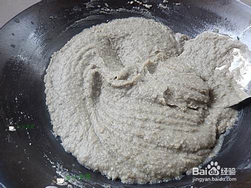 不停翻炒,稠厚状态。如果是做月饼馅,此时加入约15克的熟面粉。