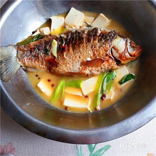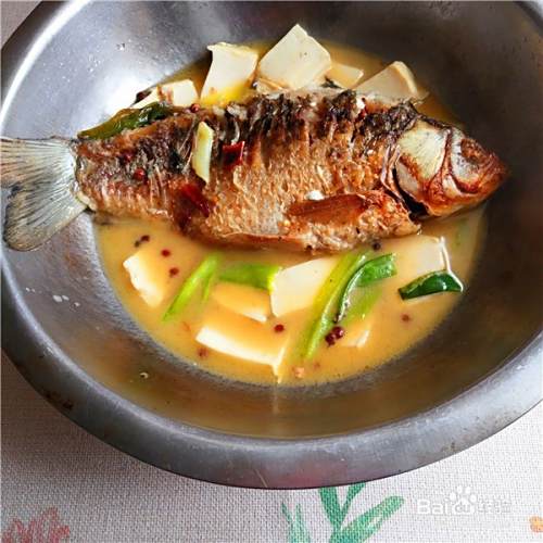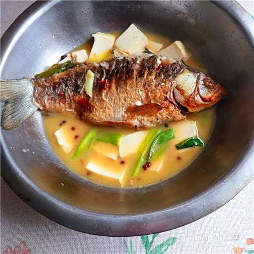 鲫鱼炖出来味道鲜美,而且价格不高,再加上些豆腐块一起炖,这样一道荤素搭配的菜就做出来了,鱼汤泡饭还相当下饭。